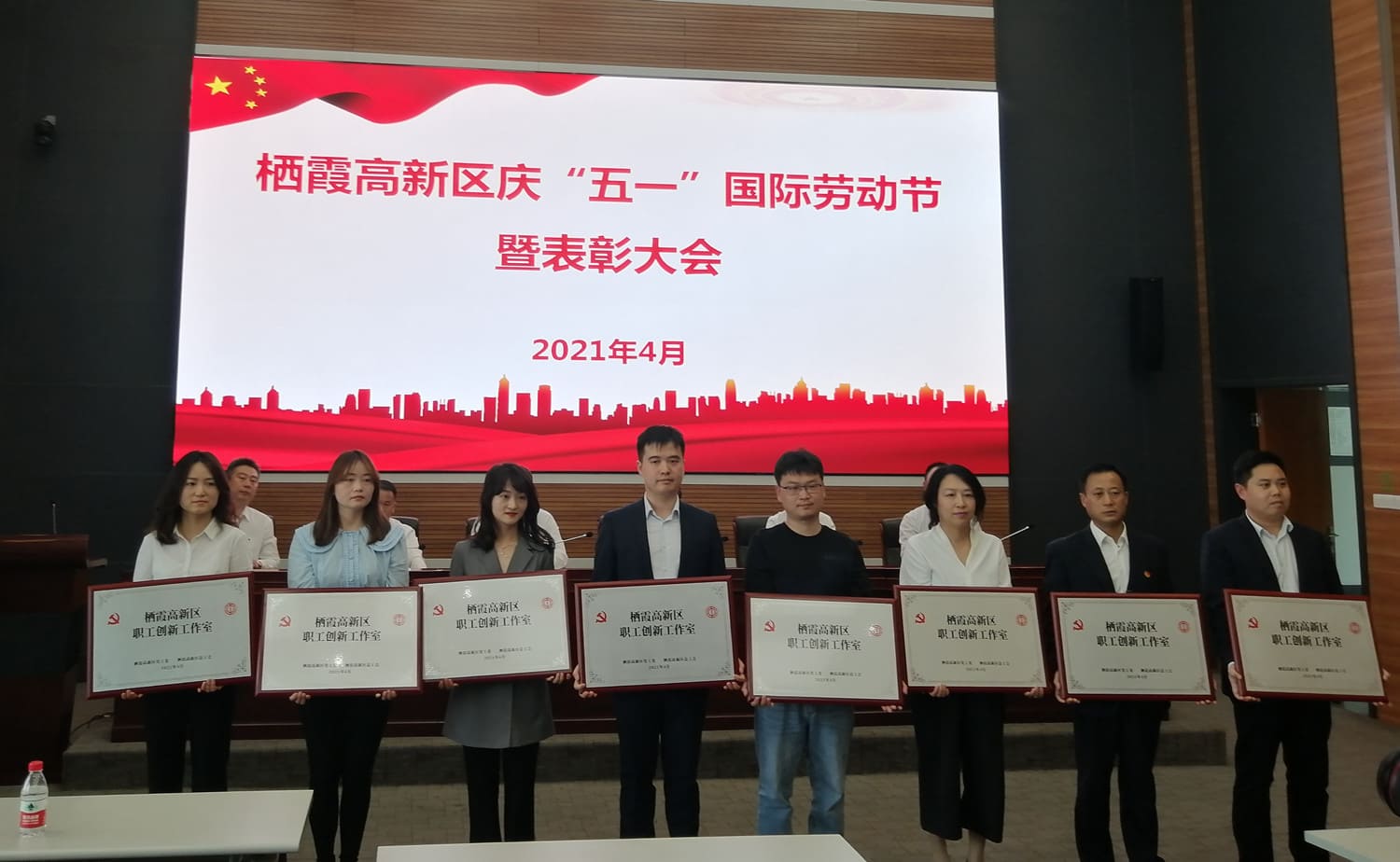 上圖:棲霞高新區(qū)慶“五一”表彰大會(huì)現(xiàn)場(chǎng)