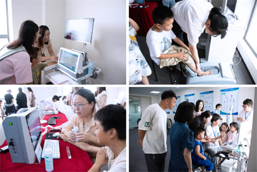 本次參觀體驗活動的主要內(nèi)容之一是為員工家屬進(jìn)行健康體檢。家人們饒有興趣地體驗各類體檢設(shè)備,咨詢各種參數(shù)的臨床意義。