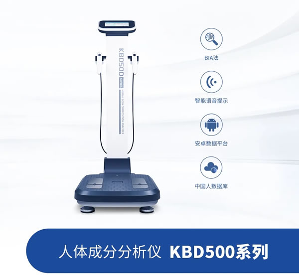 KBD500系列是南京科進(jìn)推出的人體成分分析儀。產(chǎn)品使用BIA法(生物電阻抗分析法),通過測量人體電阻抗評估人體成分。測試人群涵蓋青少年、成人、老人。設(shè)備采用Android系統(tǒng),配有觸摸屏,測試者可根據(jù)智能語音提示自主完成測量。